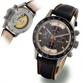 MOVEMENTETA Valjoux 7750 Elaboré Swiss made automatic 25 Jewels day date at "3" golden Rotor with Logo hour and minute silver, with superluminova BGW 9Stop-Second hand orangescrewed-down crown and pusherFUNCTIONSCASETitan satinedDiameter 44 mmHeight 16 mmWeight 118gLug width 22 mm spring barSapphire glass domed, w..