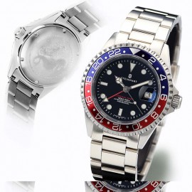 MOVEMENTETA 2893-2/SW330, élaboré Swiss Made automatic 21 Jewels second stopFUNCTIONSscrewed Crowndate at  " 3 "second time zone using swivel and watch handCASEStainless steel 316 LDiameter 42 mmHeight 13,5 mmWeight 187gLug width 22 mm spring barSapphire glass flat, with double anti-reflecting coatings on the interior side ..