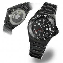 MOVEMENTSW330 ElaboréSwiss Madeautomatic25 Jewelssecond stopblack rotor with STEINHART logoFUNCTIONSDate at " 3 "screwd Crownadjustable second time zone using bezel and GMT handblack rotor with STEINHART logoCASEStainless steel 316 L black DLC satinedDiameter 42 mmHeight 13 mmWeight 190gLug width 22 mm spring barSapphire glass flat, with ..