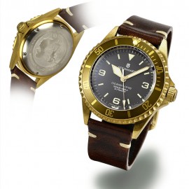 MOVEMENTETA 2824-2/SW 200, élaboréSwiss madeautomatic25/26 Jewelssecond stopFUNCTIONSscrewed CrownCASEBronzeDiameter 42 mmHeight 14 mmWeight 103gLug width 22 mm spring barSapphire glass domed, with double anti-reflecting coatings on the interior sideBezel Bronze satin light brownBack Stainless steel 316 L screwedWaterproof to 30 ATMDIAL & HANDD..