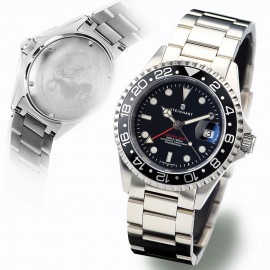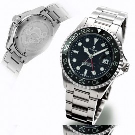MOVEMENTETA 2893-2/SW330, élaboréSwiss madeautomatic21 Jewelssecond stopFUNCTIONSscrewed CrownDate at  "3"adjustable second time zone using swivel and watch handCASEStainless steel 316 LDiameter 42 mmHeight 13,5 mmWeight 188gLug width 22 mm spring barSapphire glass flat, with double anti-reflecting coatings on the interior side with date magni..
