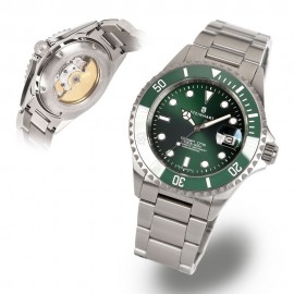 MOVEMENTETA 2824-2/SW 200, élaboréSwiss Madeautomatic25/26 Jewelssecond stopFUNCTIONSscrewed CrownDate at " 3 "CASEStainless 316 L steel satined and polishedDiameter 42 mmHeight 13 mmWeight 205 gLug width 22 mm spring barSapphire glass flat, with double anti-reflecting coatings on the interior side with date magnifier Bezel greenBack Stainless..