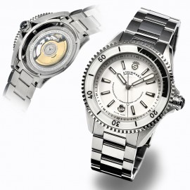 MOVEMENTETA 2824-2/SW 200, élaboré Swiss Made automatic 25/26 Jewels second stopFUNCTIONSscrewed Crowndate at " 6 "CASEStainless 316 L steel satined and polishedDiameter 43 mmHeight 13 mmWeight 212gLug width 22 mm spring barSapphire glass domed, with double anti-reflecting coatings on the interior sideBezel Alu in silver and bla..